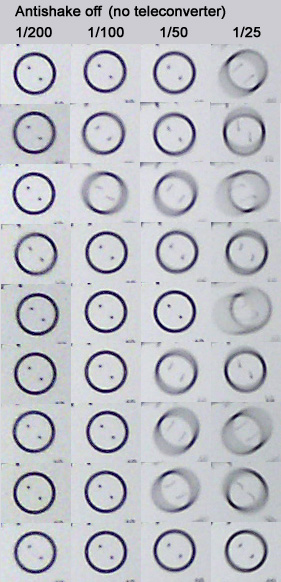A number of handheld shots were made at full tele of a test motiv.